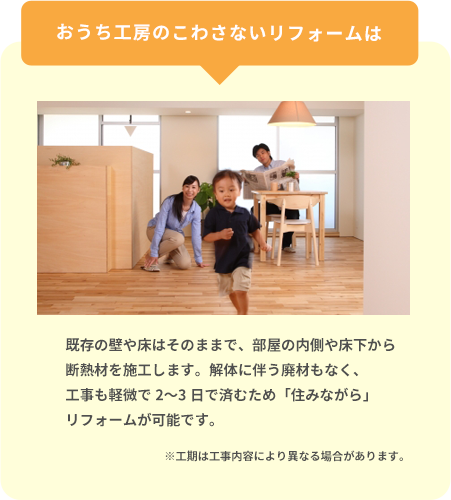 おうち工房の断熱リフォームは、「住みながら」工事が可能。