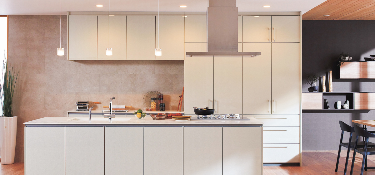 - L型キッチンの大きな魅力は、収納のボリュームと作業スペースの広さです。L型の形状を生かしてコーナー部分も収納場所に使用できることと、2人でキッチンに立っても余裕のある作業スペースは、ご夫婦やお子さんなど一緒に料理を楽しむご家庭や、豊富な収納量が活かせる、家族の多いご家庭におすすめです。デメリットとしては、L字型のキッチンを配置するためにはある程度広いスペースが必要になることや、角がデッドスペースになりやすいことなどが挙げられます。